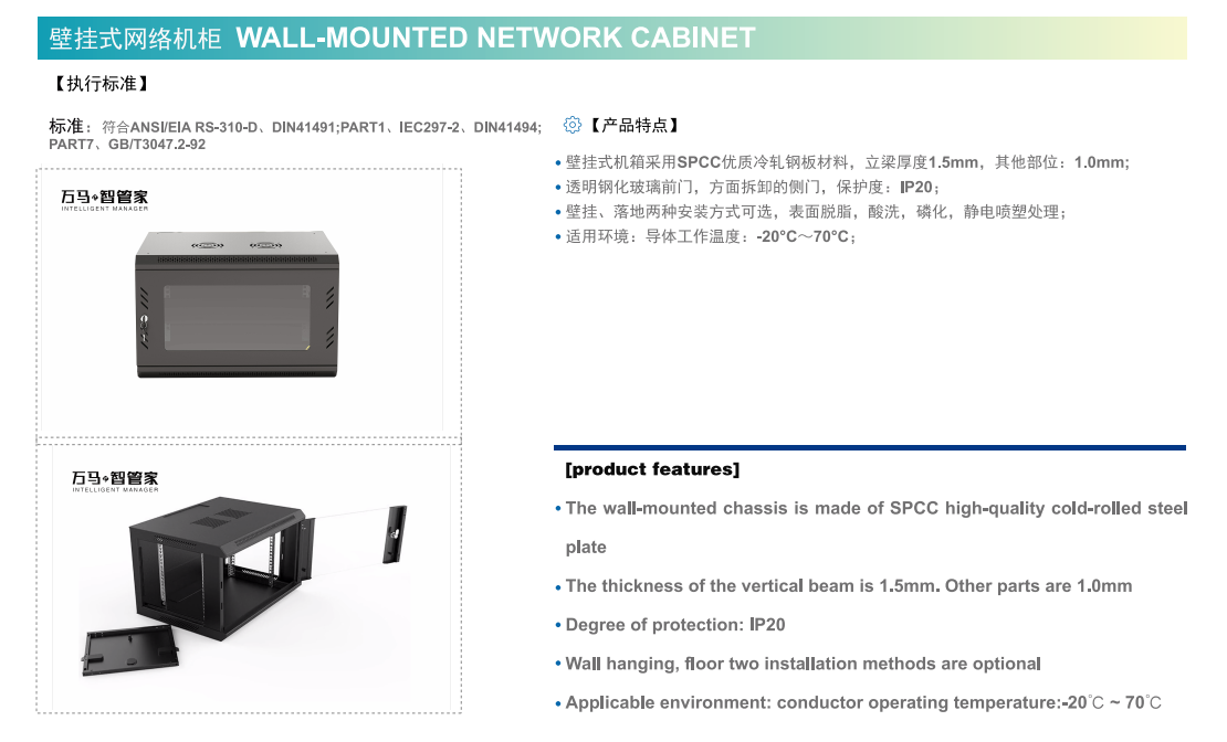 Nostro Armadi di rete Armadio di distribuzione è una soluzione affidabile e robusta per l'organizzazione e la protezione delle apparecchiature di rete in vari ambienti. È progettato per ospitare un'ampia gamma di apparecchiature di rete, come server, router, switch e altro ancora. Il cabinet è realizzato con materiali di alta qualità ed è costruito per resistere ai rigori dell'uso quotidiano.